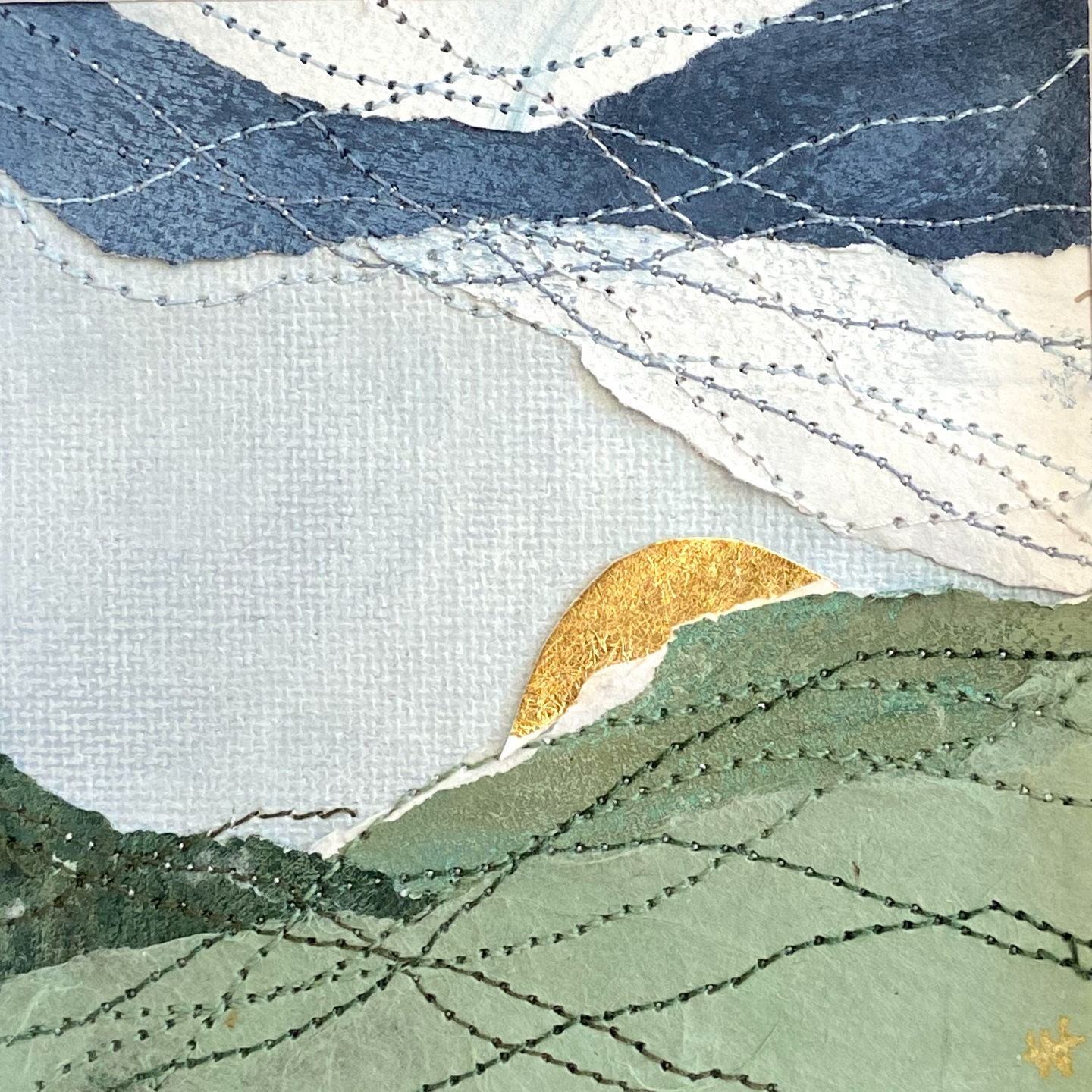 Inside the course, I guide you through my full process from start to finish - from gathering materials to building layered compositions with paint, paper, and stitching.